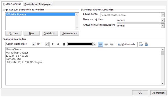 In Outlook können Sie eine oder mehrere personalisierte Signaturen für Ihre