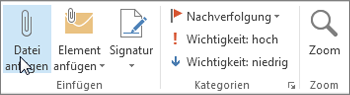 Wählen Sie im Nachrichtenfenster ‚Nachricht > Datei anfügen‘ aus.