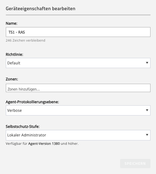 Agent-Protokollierungsebene: Verbose