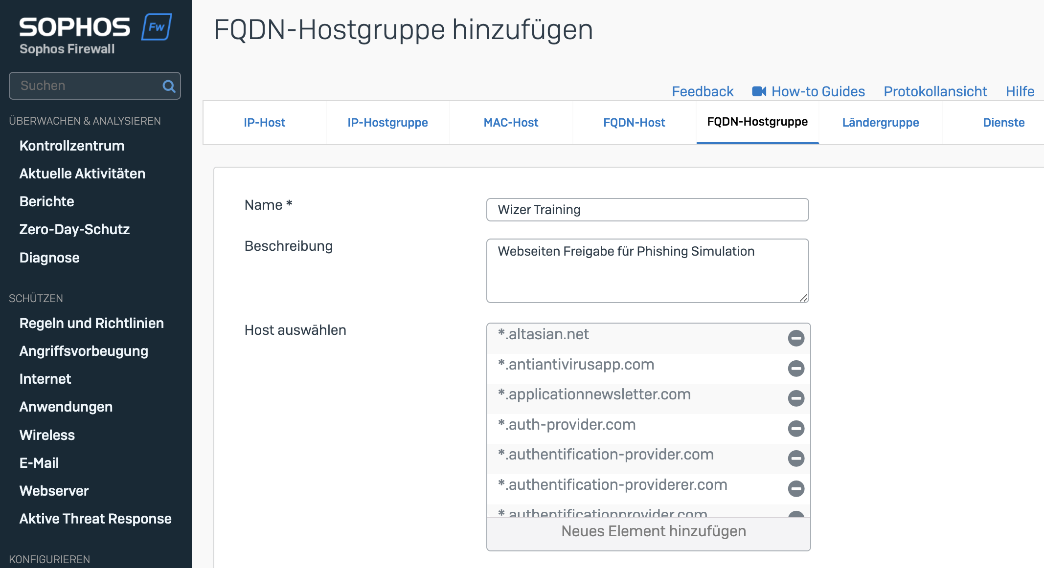 In der Sophos müssen die jeweiligen Landingpages als Sichere Webseiten hinterlegt werden.