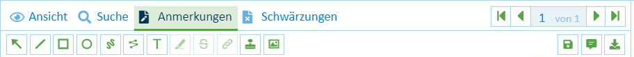 In der Ansichtszeile oberhalb der Datei können Sie in den Seiten der aktuell angezeigten Datei blättern (hier Seite 1 von 1).
