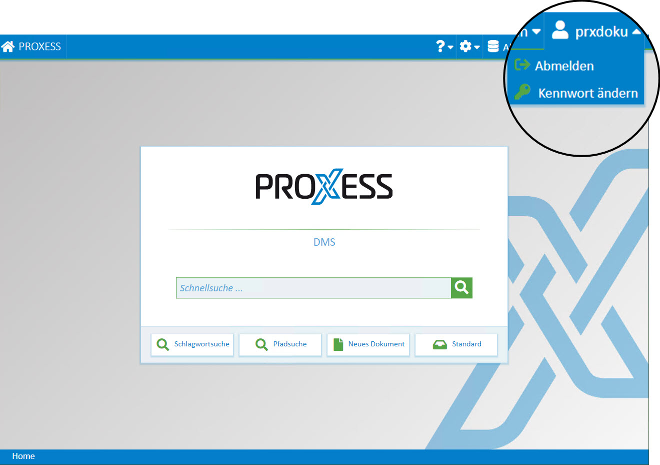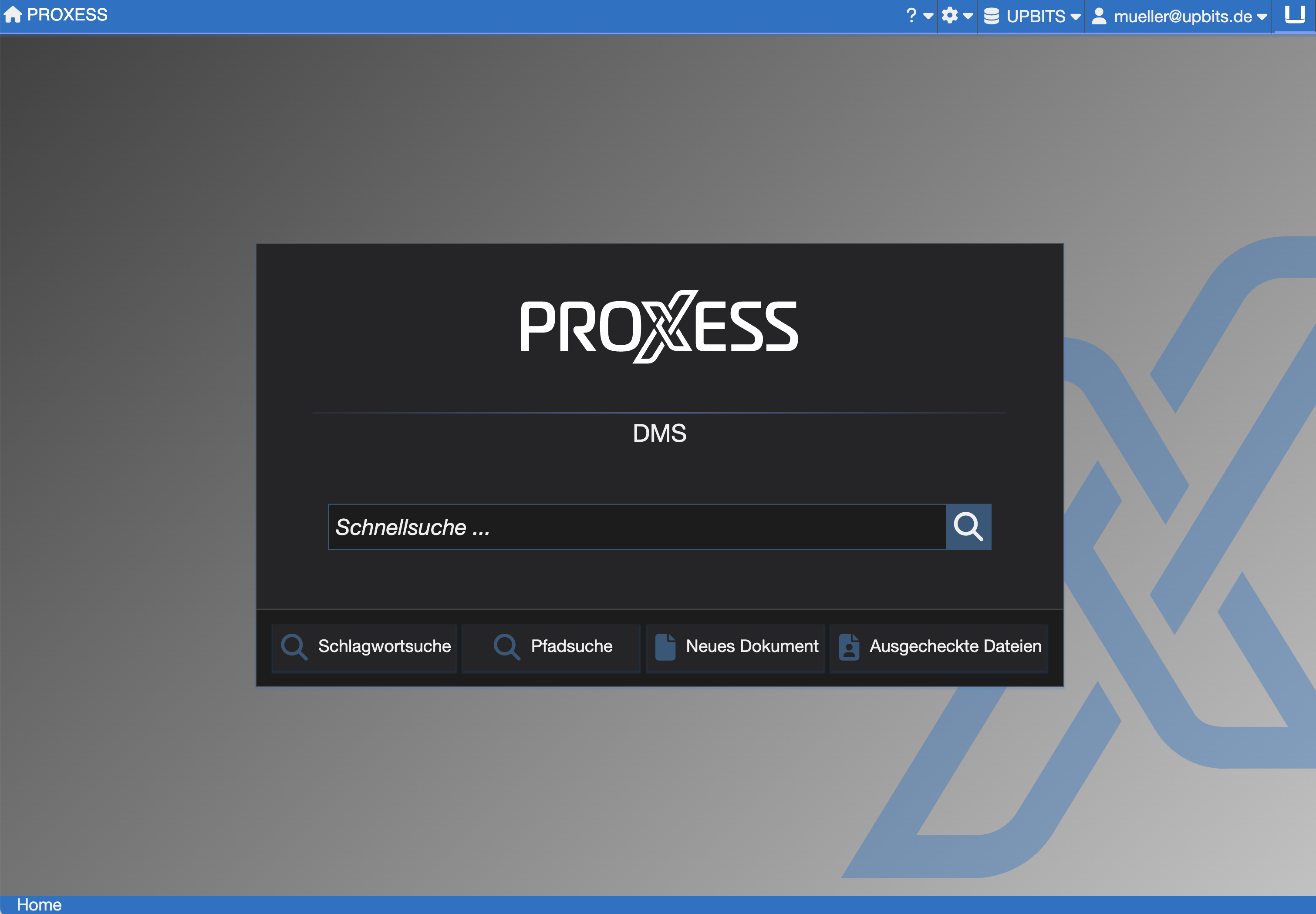 Nach der Erfolgreichen Anmeldung sehen Sie die Dashboard Maske des PROXESS Webclient sehen: