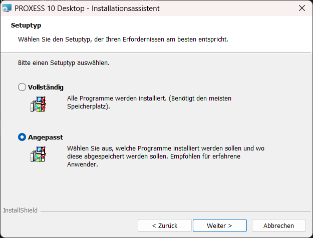 Bei der Installation darauf achten eine Angepasste Installation durchzuführen.
