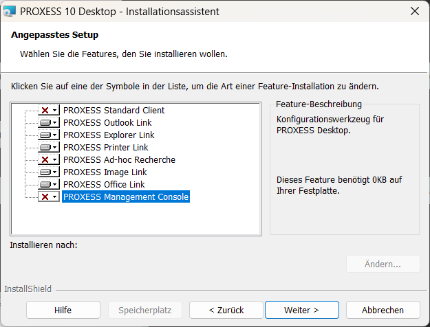 Proxess DMS Desktop.zip auf den Lokalen Desktop kopieren und entpacken sowie setup.exe starten