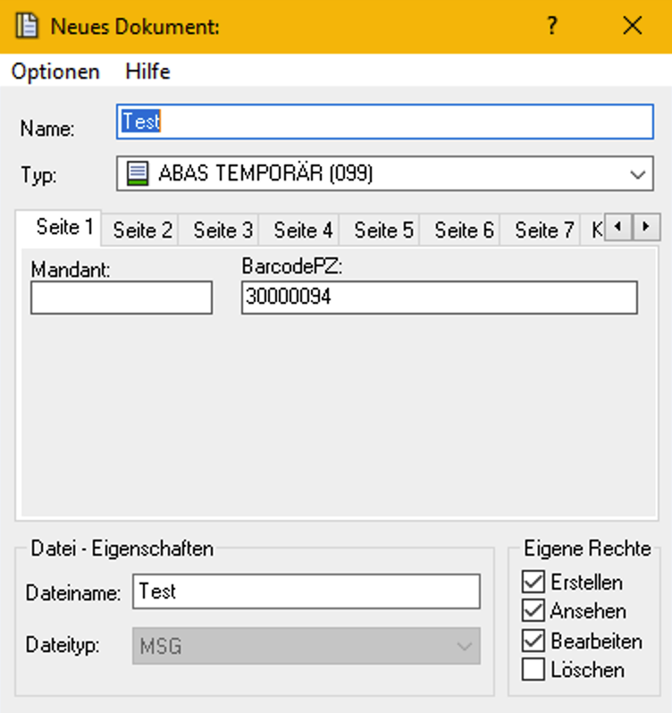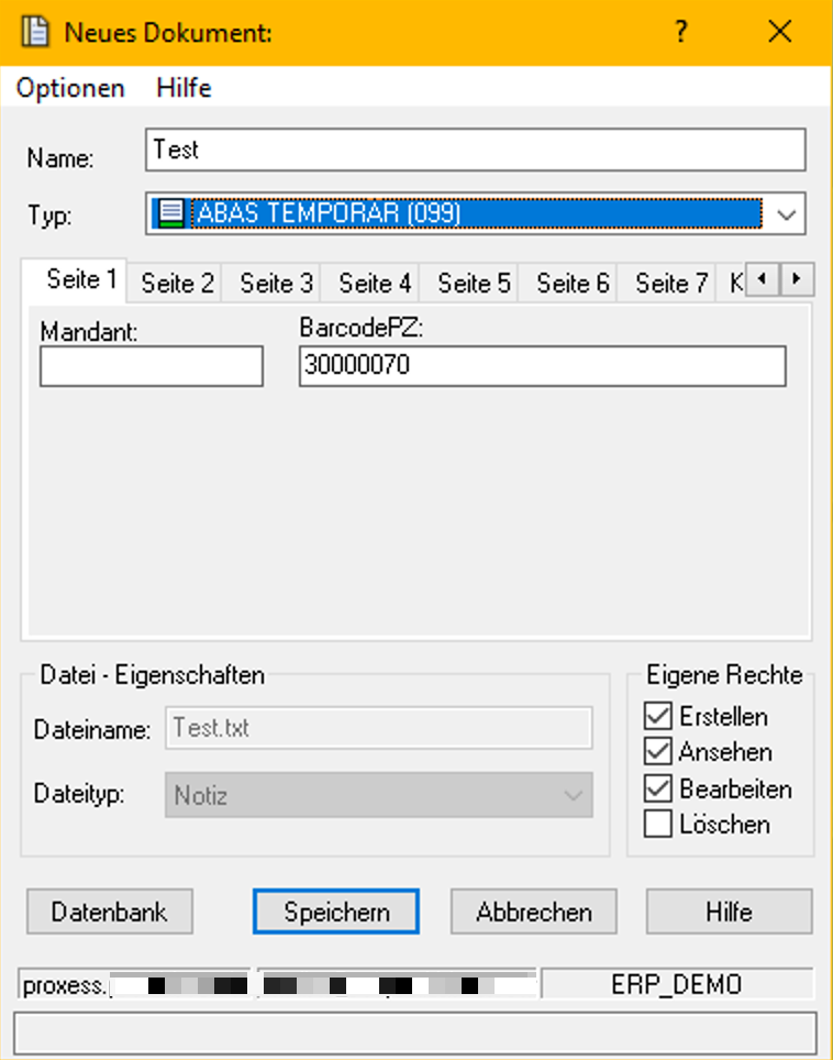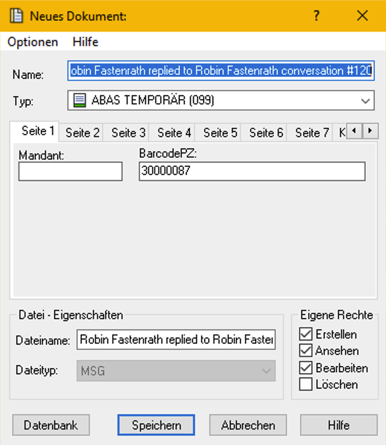 Klickt man jetzt auf Speichern so wird das Dokument in Proxess DMS z.b Typ ABAS Temporär gespeichert.