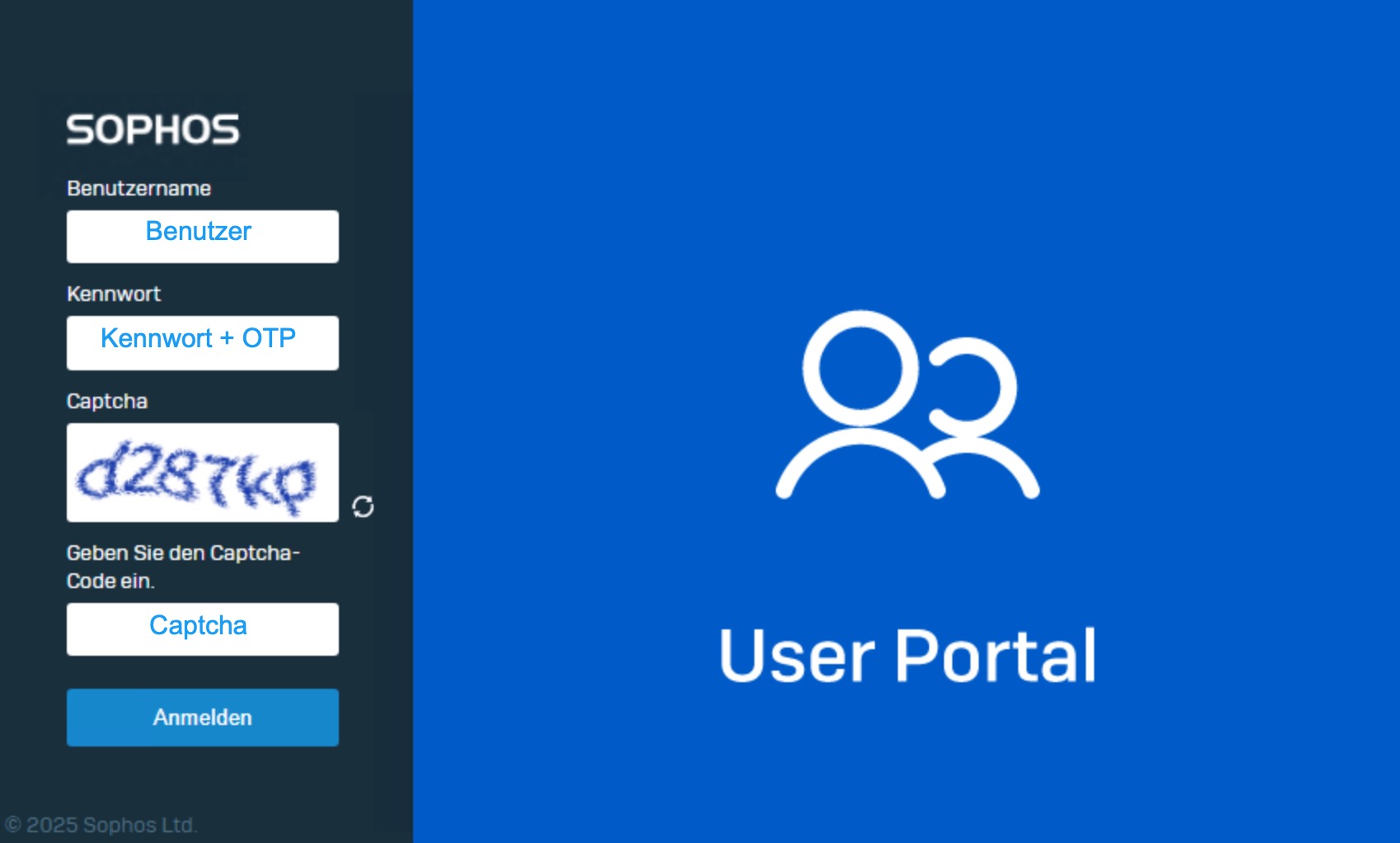 Hinweis: Falls Sie von Extern zugreifen müssen Sie noch beim User Portal oder VPN Portal ein Captcha eintragen, dort wird ihnen unter umständen ein kleines o angezeigt dies ist immer ein o und keine 0.