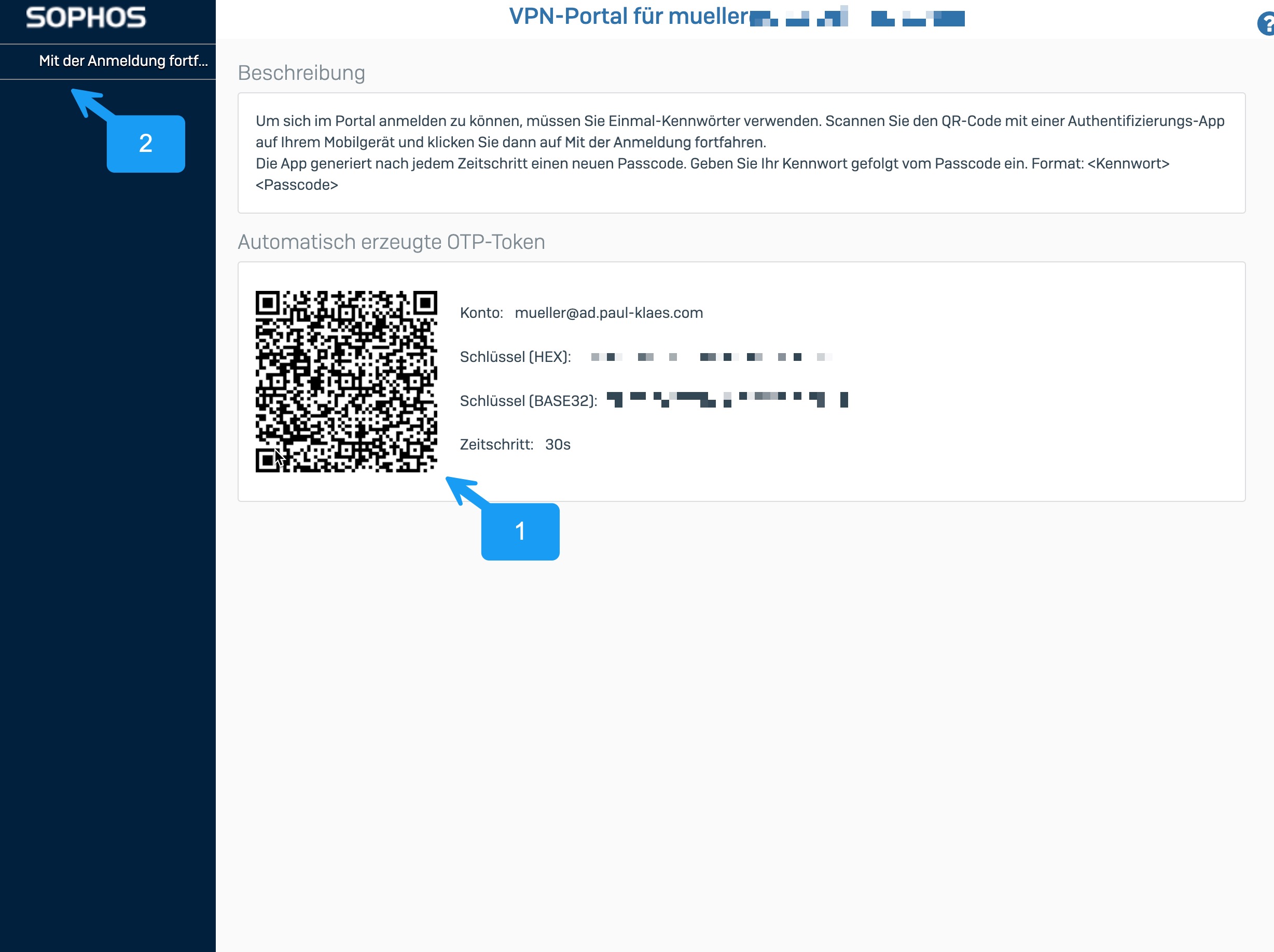 Damit ist ihr 2FA für das Sophos SSL VPN Profil sowie für den Sophos Zugang eingerichtet.