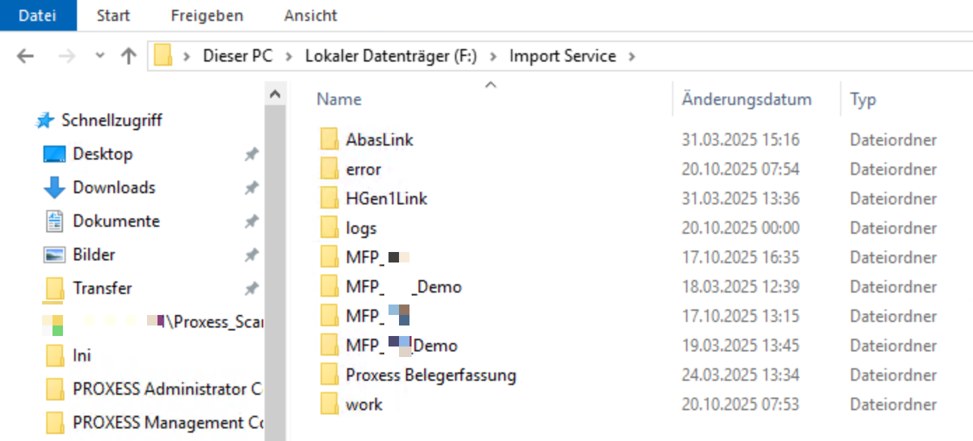 Navigieren Sie auf diesem PC zum lokalen Datenträger (F:) und dann zum Import Service.