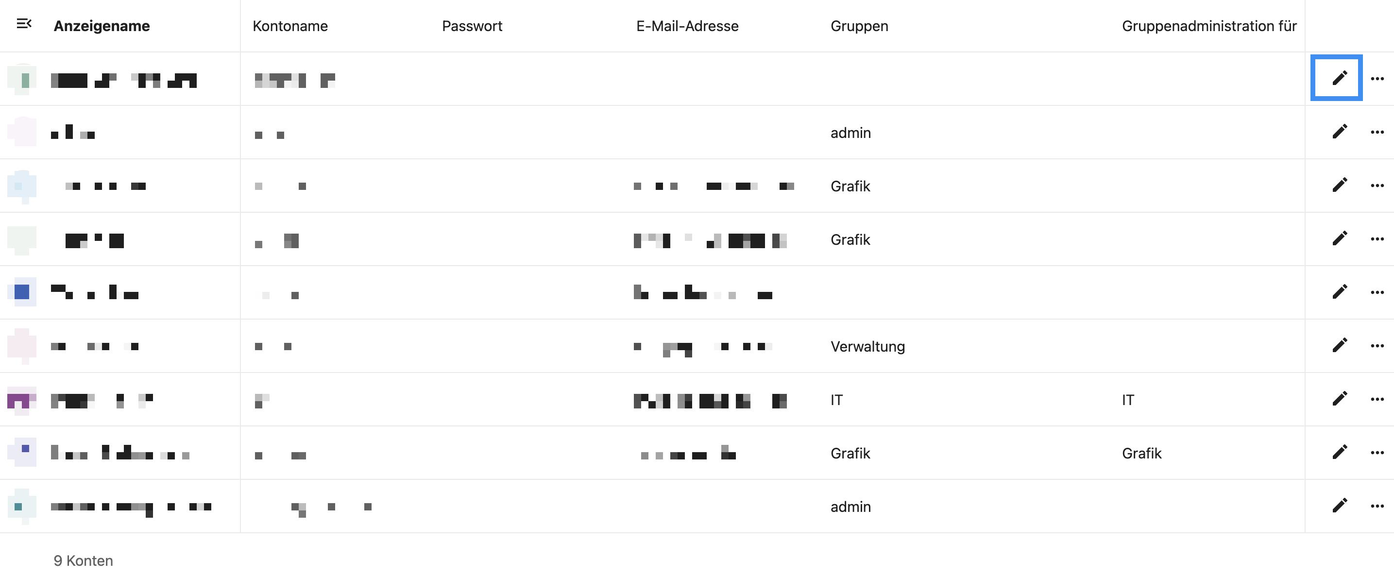 Nachdem der User angelegt wurde müssen Ihm die Gruppenrechte + Manager gegeben werden Dazu auf den Bleistift klicken der in der Übersicht zu sehen ist.