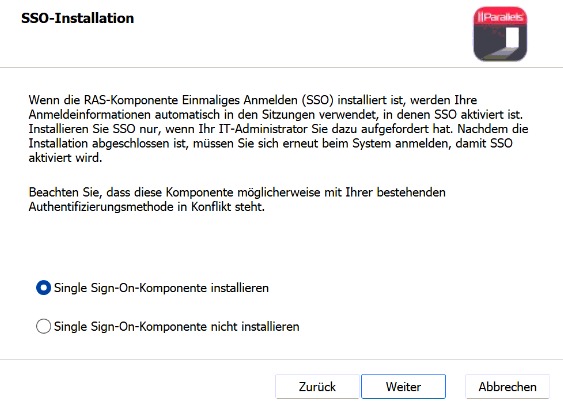 Sobald der Windows Rechner in der Domäne ist kann der Parallels RAS Client installiert werden.